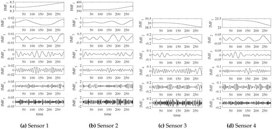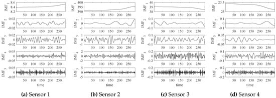 The empirical mode decomposition (EMD) results of four-channel sensor signals.