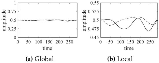 The synthesized indicate functions obtained by EWT (solid line) and EMD (dotted line).