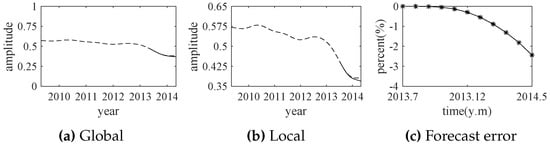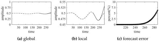 In this paper, we determine the parameter ranges of using the autocorrelation function and the partial autocorrelation function, which are performed onto the indicator function. Then, we test the model in the valid ranges of , from low orders to high ones successively. The appropriate model can be determined finally according to AIC criterion proposed by Akaike [31]. In this way, the forecast values can be calculated by (15) and (16), using the indicator function l and the selected model. The final results can be considered as the predicted results, which reflect the future operational states of the monitored complex system. In general, the predicted results are evaluated by the percentage of relative errors: