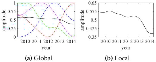 Compared with Figure 6, the significant modes extracted by EWT are a little better than those extracted by EMD. Similarly, we can normalize the significant modes obtained by EMD and synthesize the corresponding indicator function, shown in Figure 11.