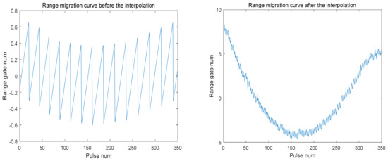 Another function of the interpolation is to make the characteristic of range migration more obvious. The range migration is approximately 1–2 cells, which is relatively small. Through interpolation, the migration is magnified, which might reach the interpolation multiplier, making the measurement of the more accurate.