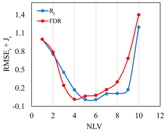 where the subscript r refers to rescaled. The lowest value of RMSEr + Jr indicates the optimal NLV for the final PLS model.