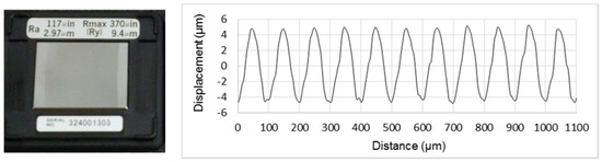In this study, a precision roughness reference specimen (Mitutoyo 178-602, Mitutoyo Corporation, Kawasaki-shi, Japan) with calibrated Ra value of 2.97 μm is used to verify the measurement capability of the laser confocal sensor (LCS). The surface pattern of this reference specimen has a harmonic form and the surface profile measured from the LCS is illustrated in Figure 3. This reference specimen was measured five times on the same spot using the LCS and the Ra values listed in Table 1 give a mean value of 3.07 ± 0.05 μm (mean ± 1 std. dev). The measurement results show a good correlation with the stated Ra value and demonstrate the feasibility of surface roughness measurement using the LCS.