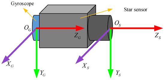 For the sake of convenience, the exposure time is divided into several short time intervals, . Let be the attitude matrix of star sensor at present moment, the observed vector of a star in star sensor coordinates is defined as , and , is the corresponding vector in inertial coordinate, so the relationship of these variance is as follows: