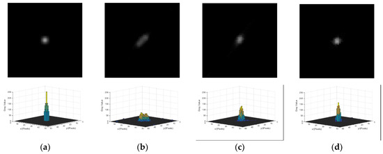 According to the authors of [28], the star spot on the image plane is static under static conditions. It is assumed that the energy of a star spot can be described as a two-dimension Gaussian distribution, so the function of its energy distribution is as follows: