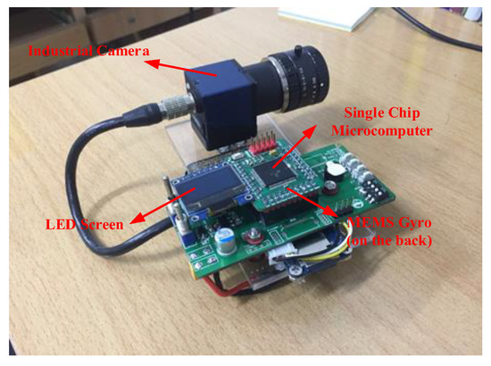 The star image and angular velocity are obtained by an integrated system that includes an industrial camera (taking the place of the star sensor), a MEMS gyroscope, and a single-chip microcomputer system, as shown in Figure 20. The angular velocity is sampled by the single-chip microcomputer and recorded in a memory card. The star image is sampled by the host computer software on the PC. The synchronization between the camera and the gyroscope is realized by the hardware trigger signal of single-chip microcomputer. The parameters of the integrated system are shown in Table 3.