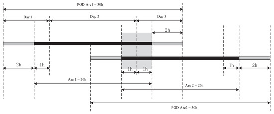 The orbit overlap comparison is also widely adopted for orbit accuracy validation. In this paper, the arc length is set to 30 h, i.e., from 21:00 of the first day to 3:00 of the third day. In order to avoid boundary effects, only the middle 26-h results are used for the overlap comparison; see Figure 6. The 2-h OODs of two consecutive orbit solutions are used for validation. Although the data from these two hours are the same, the two corresponding orbits are obtained by two independent calculations. The 2-h overlapping orbit can be considered as irrelevant. Therefore, the overlap comparison can preliminarily reflect the orbit determination accuracy [22,23]. For better understanding and expression, we mark the first overlapping arc as 1, and the others can be done in the same manner to the 28th overlapping arc. The Figure 7a indicates the OODs in the R, T and N directions obtained by the reduced-dynamic POD on 3 and 4 December 2016. The Figure 7b indicates the RMS values of 28 overlapping arcs in the R, T, N and 3D directions.