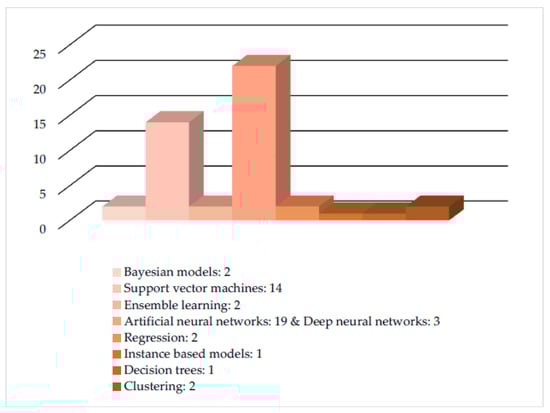 Regression constitutes a supervised learning model, which aims to provide the prediction of an output variable according to the input variables, which are known. Most known algorithms include linear regression and logistic regression [25], as well as stepwise regression [26]. Also, more complex regression algorithms have been developed, such as ordinary least squares regression [27], multivariate adaptive regression splines [28], multiple linear regression, cubist [29], and locally estimated scatterplot smoothing [30].