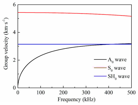 In order for the convenience of analysis, Figure 2 presented the group velocity of guided waves for a 2 mm-thick aluminum plate. It can be found that before the cut-off frequency, there only exist three wave modes, i.e., the A0 wave, S0 wave and SH0 wave. However, both the S0 wave and A0 wave are dispersive, which would lead signal distortion after wave propagation since the signal is excited in a certain bandwidth. In comparison, SH0 wave is totally non-dispersive.