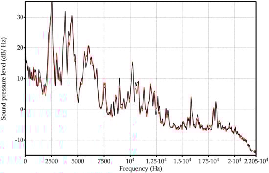 The microphone was connected to a PC sound card. The measurements were taken with a recording rate of 44,100 Hz by means of the Praat software [17].