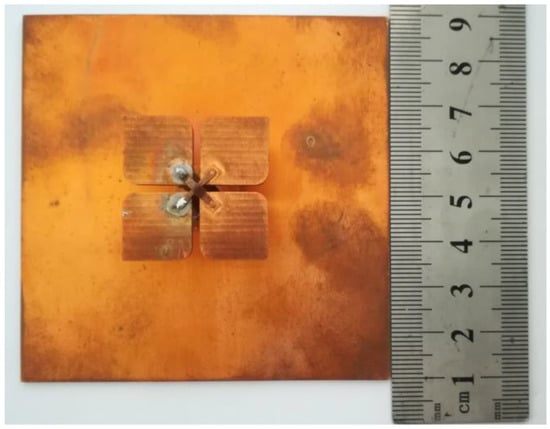 - An, W.; Li, Y.; Fu, H.; Ma, J.; Chen, W.; Feng, B. Low-Profile and Wideband Microstrip Antenna with Stable Gain for 5G Wireless Applications. IEEE Antennas Wirel. Propag. Lett. 2018, 17, 621–624. [Google Scholar] [CrossRef]