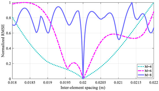 Normalized root-mean-square error (RMSE) of different inter-element spacings.