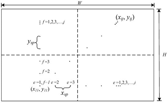 All reference points of I0(xij, yij) are located around of the center of the image (x0, y0), which is determined by the equations below.