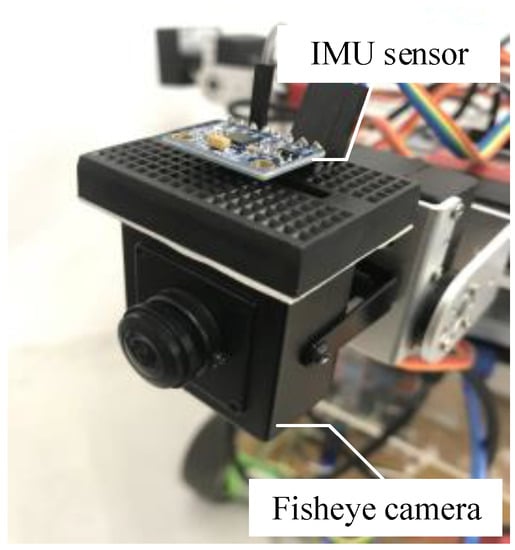 In the experiment, we implemented our algorithm by using the ELP-4025 fisheye camera (produced by Ailipu Technology Co. Shenzhen, China) and an IMU as GY-85 model as shown in Figure 8. The GY-85 model consists of 3-axis accelerometer, 3-axis gyroscope, and 3-axis magnetometer. The fisheye camera and the IMU sensor were used because of being low-cost and also can be applied in the future development of surveillance applications in the mobile robot. The resolution of the captured video was 640 × 480 pixels. We developed our algorithm with C++ and also used the basic module from OpenCV.