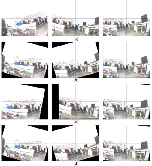 where φ equals to divided by the frame rate of the input video, H and W are the height and width of the image, respectively. However, Li and Ren [] performed the motion point with counteracting effect from the rotating motion in the z-axis, that is expressed as follows: