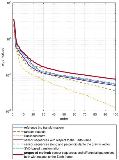 - Reference: Data are not transformed and the sensor units are assumed to maintain their fixed positions and orientations during the whole motion. This corresponds to the standard activity recognition scheme, as in [,,].