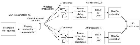The localization of an MSN is performed based on the LOS path AOAs from the MSN to both ANs. As discussed in the previous subsection, based on the observed MSSRs of on the AN arrays, we can distinguish the LOS paths from the other reflected/scattered MPCs in a complicated industrial environment. In this subsection, we propose a simple ML method to estimate the AOAs of the LOS paths.