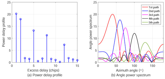 It is important to note that the antenna pattern, , is a parameter matrix that is measured in an anechoic chamber. The antenna gains for all the 2D directions of and are all measured. For example, when the antenna pattern is measured with the step of , the matrix dimension is and the elements in the matrix are the complex radiation gain with respect to the reference antenna.