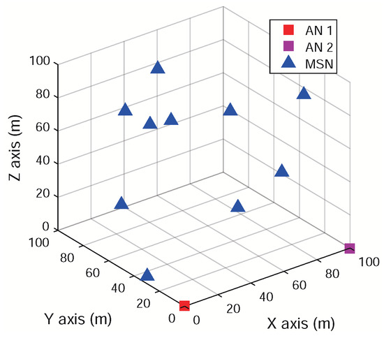 In the ATML scheme, we employ two ANs to determine the 3D relative positions of a number of MSNs in a SIWSN. Let