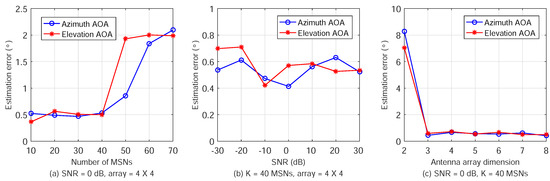 Second, we conduct extensive simulations to evaluate and compare the performance of ATML with other methods in the literature. The simulations of AOA estimation and localization errors for varying the signal-to-noise ratio (SNR), number of MSNs, and AN antenna array size are presented. The results show that ATML can locate multiple MSNs simultaneously with high accuracy.