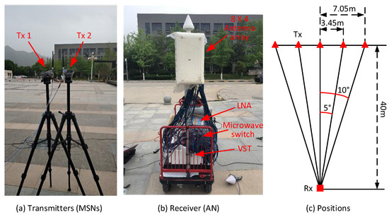Third, we have developed a testbed of ATML and performed field experiments to validate the scheme. The prototype system comprises two portable transmitters (Tx) that send orthogonal pseudo-noise (PN) sequences simultaneously to emulate MSNs and a receiver (Rx) that captures the signals using a rectangular planar antenna array to emulate an AN. The antenna array comprises 64 elements and the system operates at the carrier frequency of 3.5 GHz. In the experiment, the two Tx’s were moved along a line, and the AOAs of their LOS paths to the AN were correctly determined. The field experiment has verified the effectiveness and feasibility of ATML in practical systems.