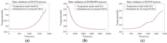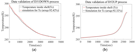 Although this simplification has been widely applied in multiple cases [25,27], it cannot be applied for the DOCARS system. The main obstacle is that the shell material of DORCAS is sandwiched between two media (cabin condition and outer seawater) and the temperature of these media both change during the profile measurement process. For this process it can hardly take numerical simulation using the above method [26]. A feasible solution is adopting a system identification method to fit the target process. Since the heat exchange efficiency between the cabin condition and seawater is relatively viscous, this article adopts a discrete autoregressive model (ARX) for system identification. In practical operation, sensors would sample Ts and Tc of the cabin condition synchronously, so the ARX model in this paper could ignore sampling delay time (Nk) and be described as a set of differential expressions, as shown in Equations (2)–(4).