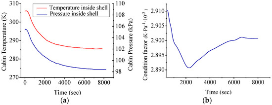 Since cabin condition is sealed with shell material, the state of atmosphere of cabin condition primarily obeys Van der Waals equation, as shown in Equation (5).