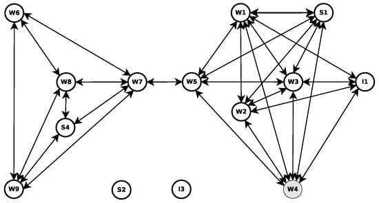 Centrality is a concept widely employed in social network analysis (SNA) to classify nodes as central or, more importantly, in the network [,]. Several approaches have been developed to compute node centrality []; however, the three most commonly-used approaches in SNA are degree centrality, closeness centrality and betweenness centrality [,]. Although there are different centrality metrics in the literature, most of them fit into two categories such as radial and medial measures []. Radial measures assess information flow that originates from, or ends at, a given node. It includes degree and closeness centrality. On the other hand, medial measures assess the geodesic distance that crosses through a given node [], which includes all variations of the betweenness centrality.