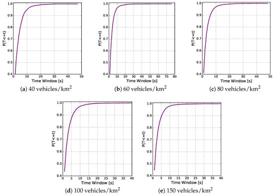 The simulation parameters used here are the same ones of Table 3, except the density of vehicles, which in this case ranges from 100–300 vehicles/km. Moreover, AoI has been applied with a 1-km radius from the congestion point.