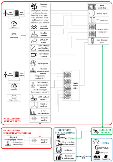 - Bozzano, R.; Pensieri, S.; Pensieri, L.; Cardin, V.; Brunetti, F.; Bensi, M.; Petihakis, G.; Tsagaraki, T.M.; Ntoumas, M.; Podaras, D.; et al. The M3A network of open ocean observatories in the Mediterranean Sea. In Proceedings of the 2013 MTS/IEEE OCEANS Conference, Bergen, Norway, 10–14 June 2013; pp. 1–10. [Google Scholar]