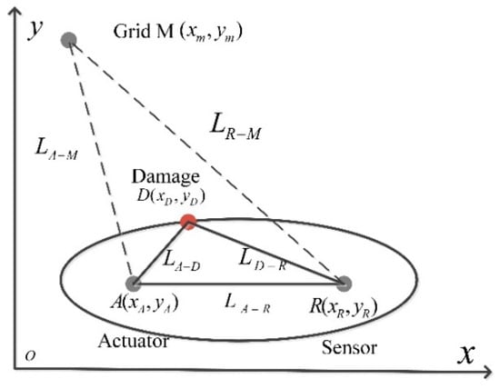 Considering one pair of actuator/sensor path, as shown in Figure 2, the Lamb wave is excited by actuator and received by sensor . The ToF of scattered Lamb wave after interacting with damage is