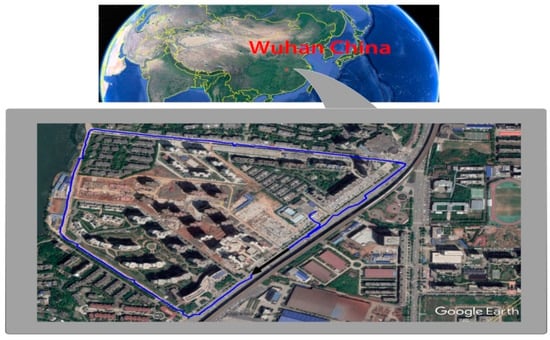 The basic parameters of the test vehicle are show in Table 3. The test area is a road (width: about 5 m) in Wuhan, where valid GNSS positioning is very good. A part of the driving trajectory is shown in Figure 6.