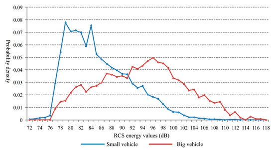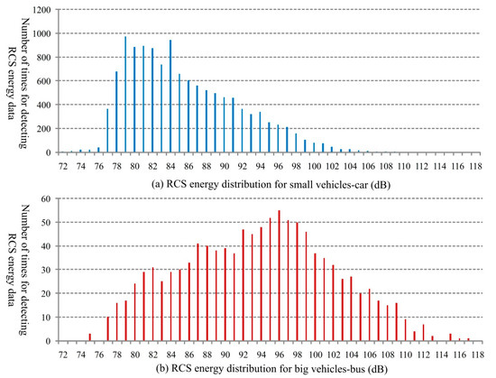 - The RCS energy presents a downward trend as the vehicle moves away from the radar. For different types of vehicles, the RCS energy distributions have certain differences, which can be used for identifying small or big vehicle targets. In this paper, a simple method for target type identification is also proposed.