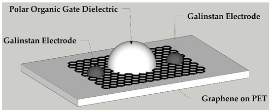 - Ordonez, R.; Hayashi, C.; Torres, C.; Hafner, N.; Adleman, J.; Acosta, N.; Melcher, J.; Kamin, N.; Garmire, D. Conformal Liquid-Metal Electrodes for Flexible Graphene Device Interconnects. IEEE Trans. Electron Devices 2016, 63, 4018–4023. [Google Scholar] [CrossRef]
