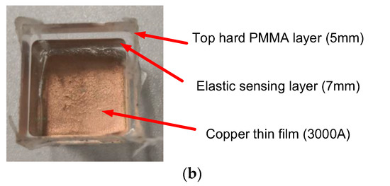 Experiment setup: (a) image acquisition, (b) sensing device with sensing film at the bottom.