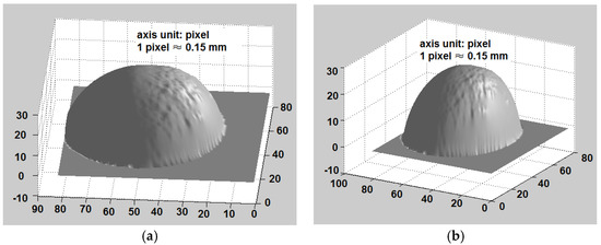 The 3-D reconstruction of a rigid sphere (two different view angles): (a) from the upper top direction, (b) from the right upper top direction.