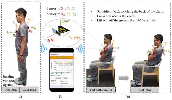 (a) Romberg test; (b) BioKin system; (c) Trunk test.
