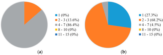 In contrast, from the chart shown in Figure 11b, the scores related to the engaged clutch position are lower. This is mainly due to the decrease in the knee angle and force applied on the clutch pedal. The data shows that 4.5% of volunteers have a medium risk (new studies are necessary to carry out a modification), 68.2% have a low risk (actions may be needed) and finally, 27.3% have a negligible risk (action is not necessary).