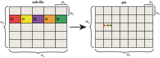 - Transposition. The pixels are resampled as in Figure 3, to convert the sub-EIs to the final microimages to project in the 3D InI monitor.