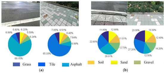 After normalization, the pie charts of confidence can clearly show the membership pie charts of various terrains corresponding to the terrain image. The set of membership pie charts for all terrain types after a single identification are presented in Figure 4.