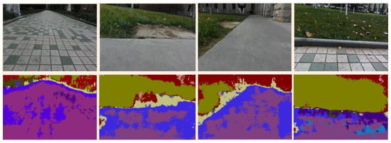 The SegNet achieved an overall smooth segmentation of the maximum degree of association with all environments on the images. Even though there were trees, roads, and buildings on the image, accurate recognition of objects and segmentation of appearance surfaces can be achieved. However, the average accuracy of categories and the boundary division effect of categories are not ideal. Experimental results show that, when training samples were few and training time was short, the image segmentation results were poor, the accuracy was low, and the boundary information was more blurred. At the same time, the experimental results also validated the influence of the RGB as an input on the shape and texture of the object in the recognition process to reasonably and accurately implement the image segmentation process. The experimental results show that, when a certain training level was reached, the accuracy of the segmentation result became better. In this work, the Caffe 8.0 framework built on Ubuntu 16.04 was used. The Kinect camera was fixed on the robot top and used to capture images. The robot height was 40 cm, the tilt angle of the camera was 40°, and the pixel size was 480 × 360. The training sample used the dataset in reference [30], with a sample size of 367 and a training frequency of 40,000. The whole processing time of one image is about 0.6 s. Finally, accurate SegNet segmentation results were achieved.