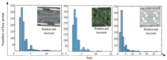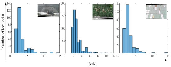 To explain the mismatch, we extracted the number of SURF feature descriptor from the segmented images, as shown in Figure 8. Obviously, the feature points of the segmented image were not sufficient. Therefore, because of using the segmented image for terrain recognition, the accuracy of the output terrain label was reduced. To improve recognition accuracy, the image filling method was adopted to process the divided image to enhance the terrain features. The segmented color image contained only the pixels of the original color image collected by the Kinect camera, and the other part of the blank pixels was filled by copying the divided image. In the test, the rotation inversion operation was used for image filling. The number of feature points in Figure 8 and Figure 9 indicate that the proposed method can enhance the local features of the segmented image. The classification results of the stitched images using the proposed methods are shown in Table 1. Using the image filling method (rotation reversal), the error of the first classification round can be corrected. Obviously, the confidence score of the terrain type increased after the image was filled. In contrast, the confidence score of the wrong terrain type was reduced. The results are shown in Table 2. This means that the proposed method can effectively enlarge the image features of the classifier.