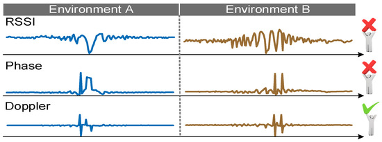 - Pu, Q.; Gupta, S.; Gollakota, S.; Patel, S. Whole-home gesture recognition using wireless signals. In Proceedings of the 19th Annual International Conference on Mobile Computing & Networking, Miami, FL, USA, 30 Setember–4 October 2013; pp. 27–38. [Google Scholar]