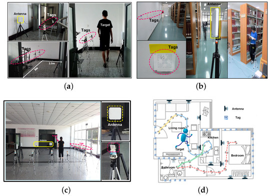- Han, J.; Qian, C.; Wang, X.; Ma, D.; Zhao, J.; Zhang, P.; Xi, W.; Jiang, Z. Twins: Device-free object tracking using passive tags. In Proceedings of the IEEE INFOCOM 2014-IEEE Conference on Computer Communications, Toronto, ON, Canada, 27 April–2 May 2014; pp. 469–476. [Google Scholar]