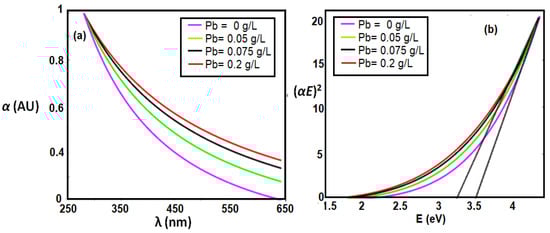 (a) Absorbance dispersion; and (b) bandgap calculations for gold-ceria nanoparticles at added Pb concentrations to prove the static mechanism of the sensing.