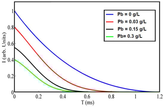 Figure 9 shows the quenched fluorescence lifetime change according to the sensed tiny particles. It is obvious that the fluorescence lifetime has been decreased with added lead tiny particles due to the static quenching of gold-ceria nanoparticles due to the lead quencher. In concentrations up to 0.3 g/L, the lifetime is decreased up to 65% of initial lifetime.