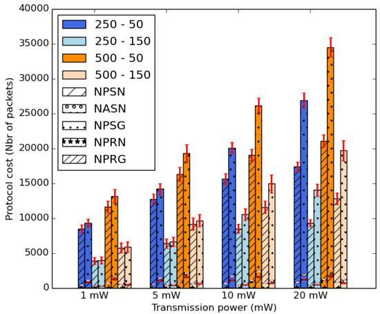 As for the number of aggregated packets into the same packet, as shown in Figure 38, we note that using the smallest aggregation values (20 m–2 s) offer the best results since they lead to aggregating fewer packets which improves the energy consumption of sensor nodes.