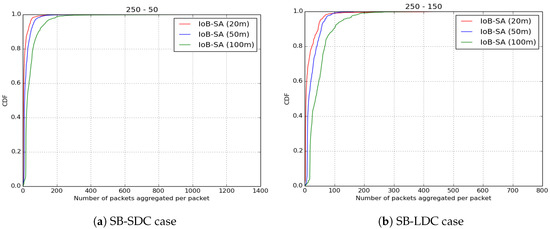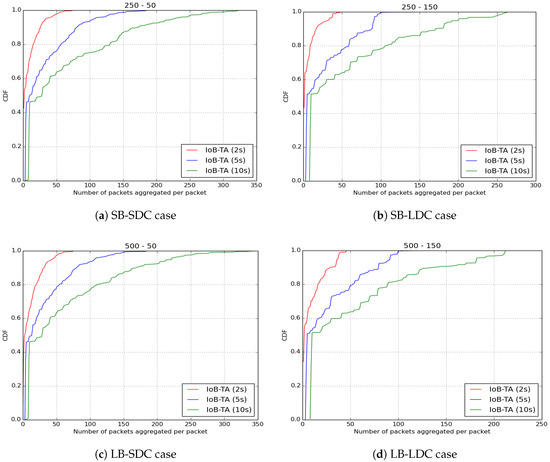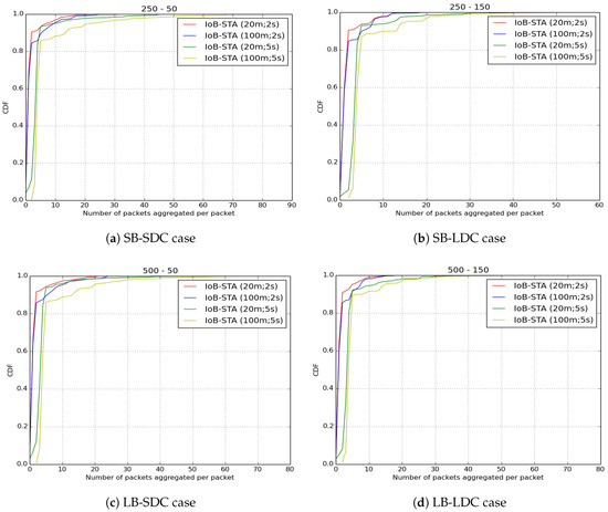Average number of aggregated packets per packet for IoB-STA.