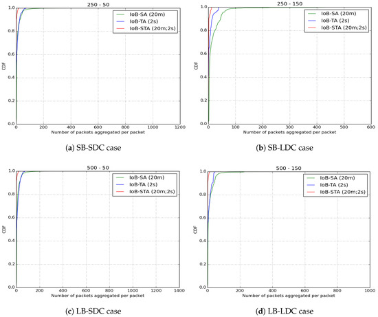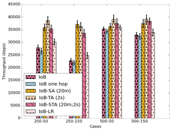 As for the throughput, as shown in Figure 40, the three variants of IoB based on data aggregation provide best performance.