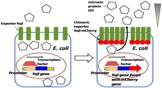 A performance-enhanced promoter is applied for the construction of a chimeric exporter, for the purpose of studying the activity of YojI–mCherry during the export of microcin protein J25.
